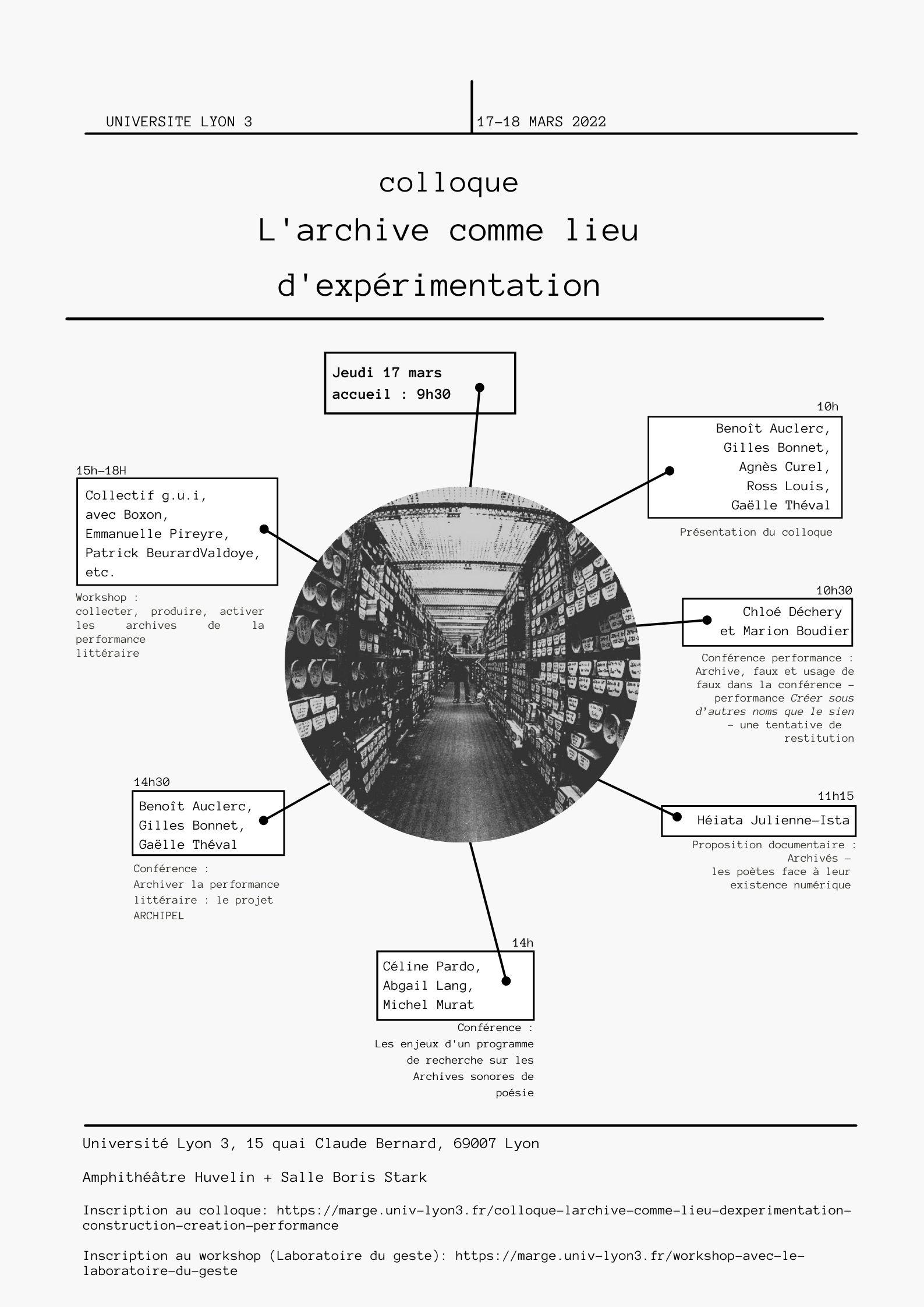 Benoît Auclerc, Gilles Bonnet, Gaëlle Théval | Conférence : « Archiver la performance littéraire : le projet ARCHIPEL »